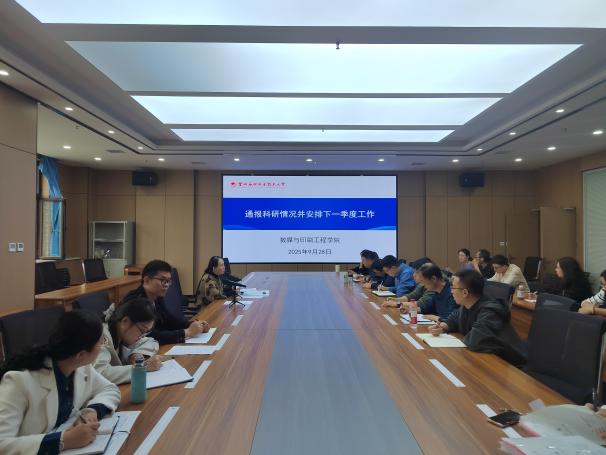 学院负责人通报了学院近期科研工作情况,对取得的成果给予肯定,并分析了存在的问题和不足。针对下一季度的科研工作任务,进行了具体安排和部署,鼓励教职工积极开展科研创新,加强学术交流与合作,争取在科研项目申报和成果转化等方面取得新突破。