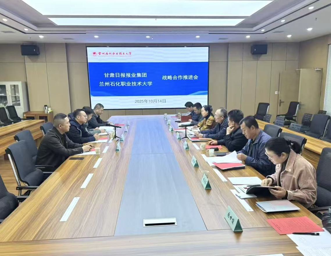 10月14日下午,学校与甘肃日报报业集团在西固东校区第三工业中心9楼会议室召开战略合作推进会。甘肃日报报业集团党委委员、组织部部长王斌,印务分公司总经理兰宁,组织部副部长马峰,印务分公司总工程师王红伟,兰州石化职业技术大学党委常委、副校长张宏,数媒与印刷工程学院班子成员及印刷骨干教师共同参会。会议由数媒与印刷工程学院党总支负责人主持。