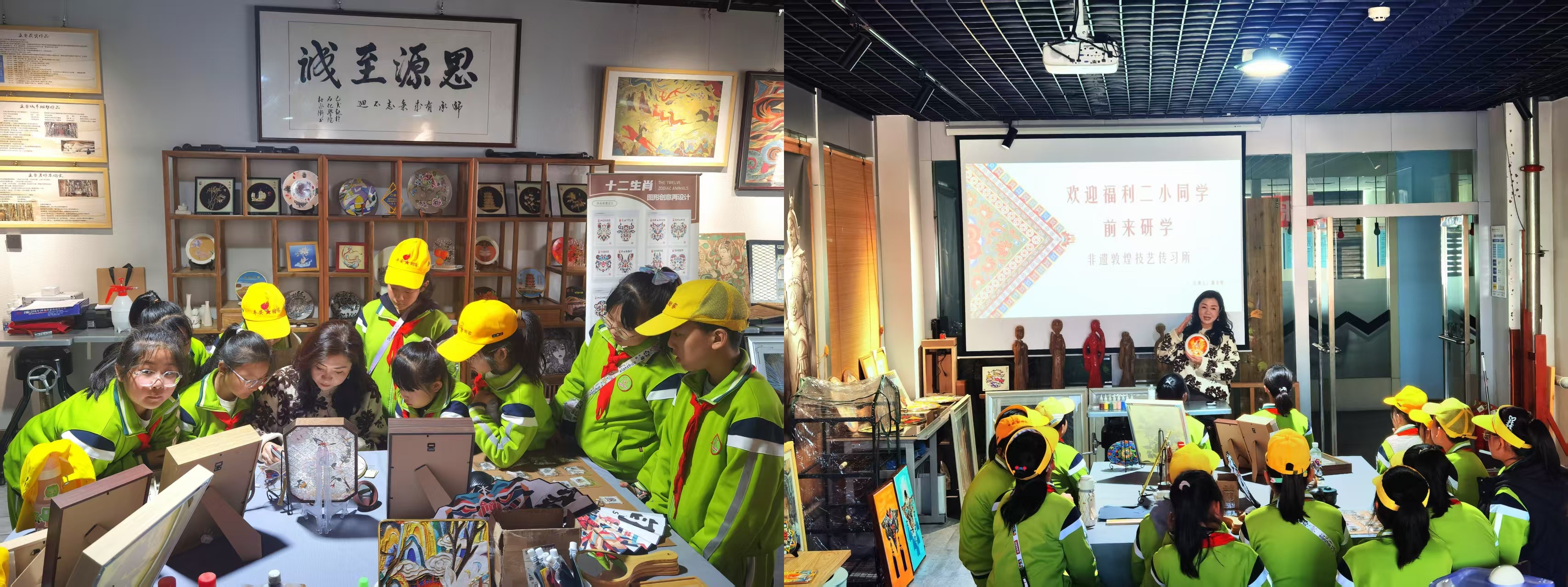 2025年10月21日下午14:30,数媒与印刷工程学院迎来了兰州市西固区福利二小师生一行,开展了一场别开生面的非遗研学活动。此次活动由数媒与印刷工程学院艺术设计教研室承办,40名福利二小的学生在带队老师王睿老师的带领下,走进校园,开启了一段探索非遗文化的奇妙之旅。