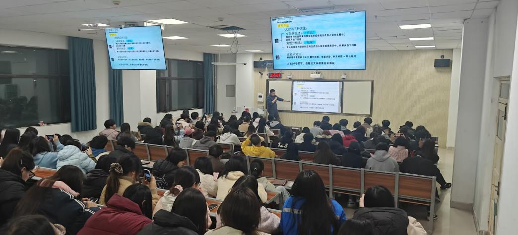 最后,由韩育沛博士以“如何撰写高质量毕业论文”为主题,给2026届本科生进行专题培训。在此环节中,他强调毕业论文撰写的基础架构规范,精讲专业论文核心模块的撰写技巧,并依照不同学生的专业面向进行举例分析,对毕业(设计)论文初稿中出现的问题集中展开实操指导与互动答疑,帮助本科学生树立了严谨的学术思维,为后续高质量完成毕业论文。