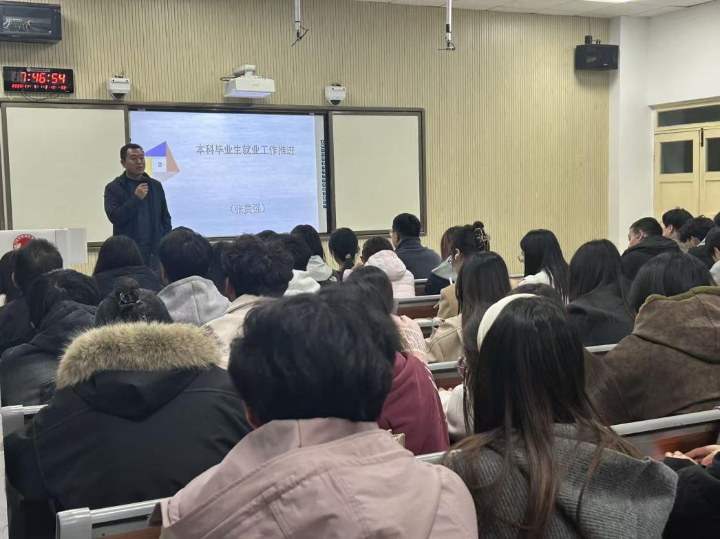 其次,党总支负责人对本科毕业生就业创业工作提出明确要求,毕业设计(论文)阶段是毕业生衔接就业创业的重要过渡期,既要以严谨的态度完成学术任务,也要提前规划职业发展方向,树立正确就业观,以积极主动的姿态把握就业机会,避免“等靠要”心态。同时,他强调学风建设的重要性,学习是学生的第一要务,应该端正学习态度,克服拖延懈怠情绪,严格按照时间节点推进毕业设计(论文)学习进度。