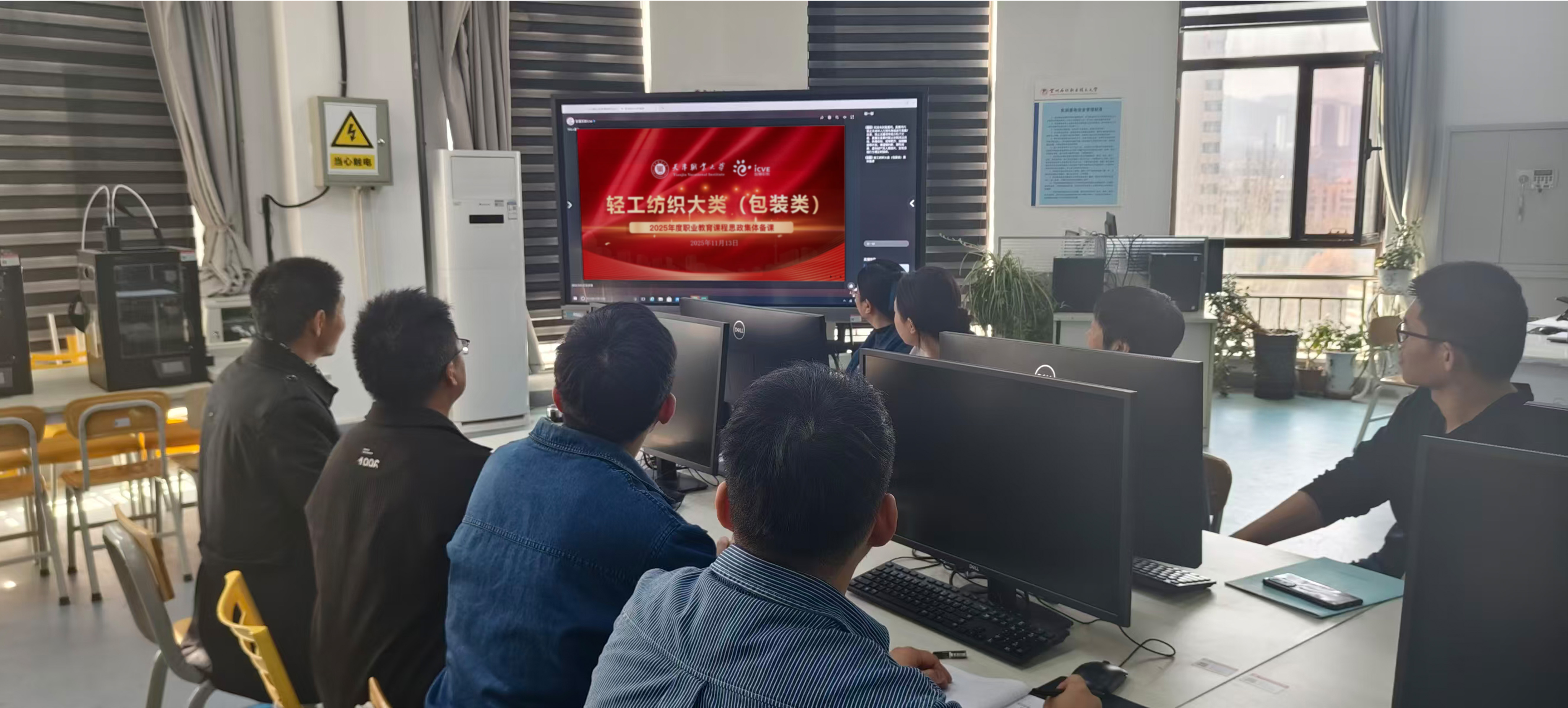 11月13日下午,由教育部全国包装职业教育教学指导委员会主办、天津职业大学承办、高等教育出版社协办的轻工纺织大类(包装类)课程思政集体备课活动顺利举行。本次活动采取线上直播、线下会议的方式开展,数媒与印刷工程学院组织印刷专业教师在第三工业中心七楼数字印刷实训室、领导班子及其他专业教师在六楼学院会议室集中观看线上直播,旨在提升教师课程思政建设能力,推进教育教学改革。